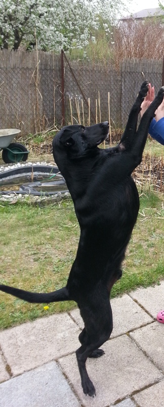 Trotzdem dauerte es knapp 6 Monate bis er zu einem richten Labrador-Mix wurde. Jetzt ist er es:  nur Fressen, Fressen, Fressen im Kopf.
