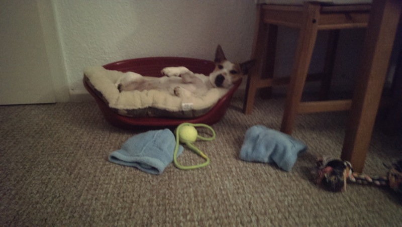 Jessy wohnt nun schon fast 4 Wochen bei mir. Sie hat sich ohne Probleme bei mir eingelebt. Sie kuschelt sehr gern, geht sehr gern ausgiebig spazieren, buddelt megatiefe Löcher(die Mäuse im Garten haben ein schlechtes Jahr vor sich), spielt super Fußball und liebt und genießt auch mal die Ruhe. Wenn ich zur Arbeit bin, holt sie sich meinen Turnschuh in ihr Bettchen. Also alles bestens bei uns beiden. Danke noch mal für die prima Beratung bei Ihnen.