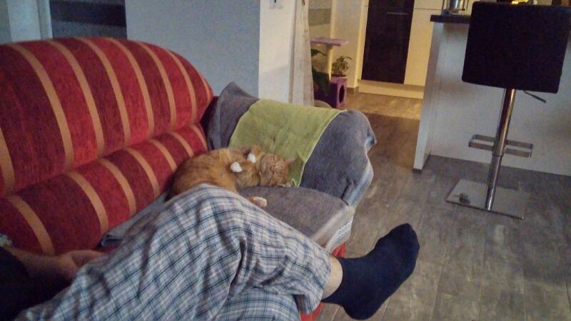 Ich wohne jetzt in einem wunderschönem Haus in Bernau, hab jede Menge Platz zum Toben, gehe schon mal auf die Terrasse und ......gaaaaaaanz vorsichtig auch weiter, am liebsten abends, sozusagen incognito. Im Haus gibt es überall Möglichkeiten zum Einkuscheln, Kratzen und Spielen. Am spannendsten fand ich es anfangs jedoch hinter dem großen Küchenschrank. Herrchen musste zwar abends die Blende abbauen, um mich wieder rauszuholen, aber inzwischen hab ich ihn ja auch schon um „die Pfoten gewickelt" und nutze eben die prima Aussicht vom Küchenschrank herunter. *schnurr*