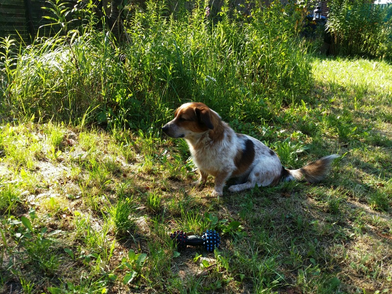 ...allerdings war das VOR dem Gewitter, das ihn zum Ausrasten brachte, und uns zu schweißgebadeten Hundeanimateuren werden ließ.