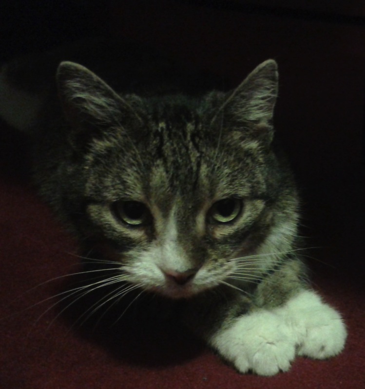 Am Tag versteck ich mich und am Abend locken sie mich mit Futter aus meinem Versteck, Nachts bin ich wach und sie schlafen – komisch. Am Anfang bin ich immer zu meinen Verstecken geschlichen, inzwischen geh ich Aufrecht und neugierig durch die Räume. Ein wenig Zeit brauch ich noch um alles kennen zu lernen aber es eilt ja nicht.