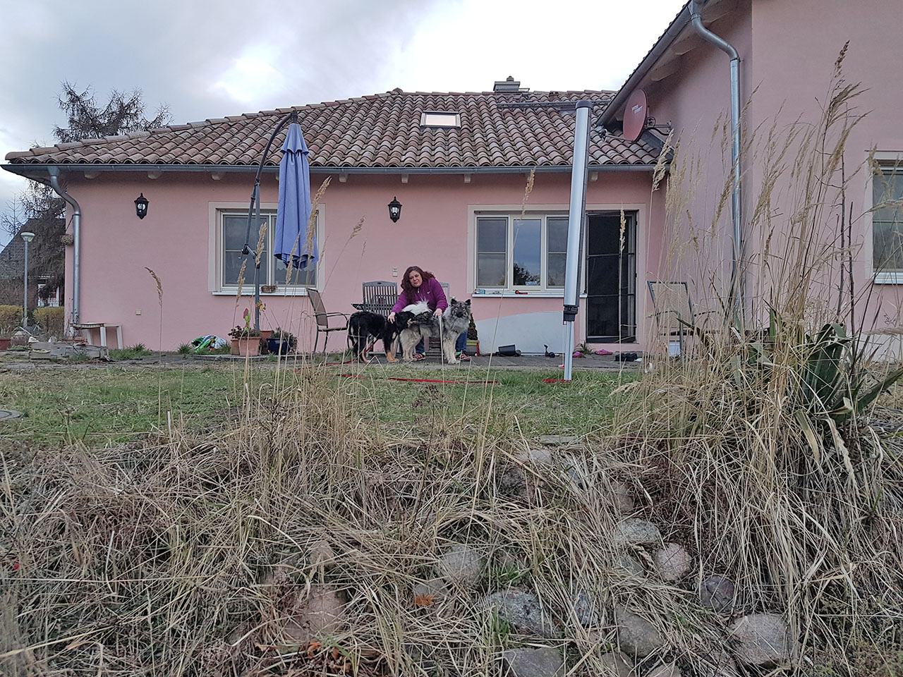 seit einer Woche ist Loona nun bei uns und sie macht sich prächtig. Sie ist total verschmust, sobald ich mich hinsetze ist sie da und stupst meine Hand an, damit ich sie knuddle, und sie ist völlig verrückt nach Spaziergängen und Leckerlis. Trotz 5 m Schleppleine klebt sie, ganz Bordecollie like an meiner Hand :-)