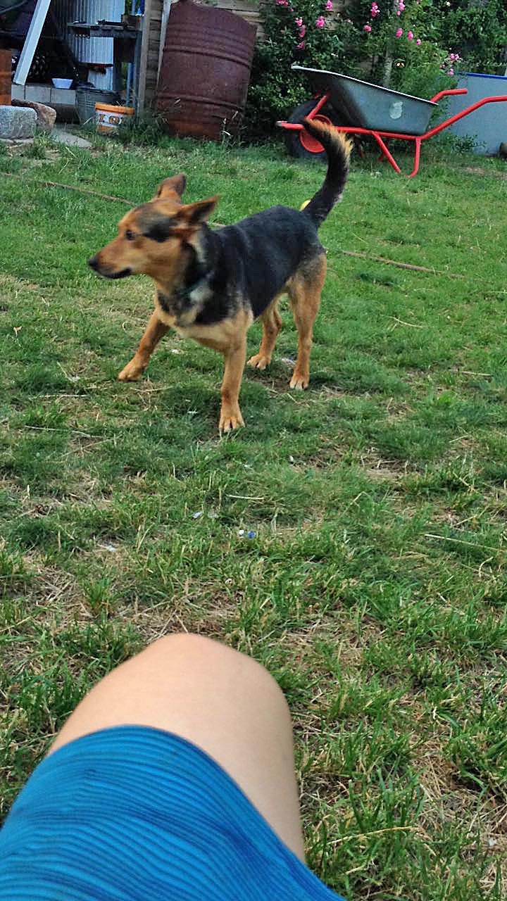 Ich hoffe, die beiliegenden Fotos zeigen, wie entspannt Fuchur zur Zeit ist. Alle vier Hunde zu erwischen, ist eigentlich nur bei den Futterzeiten möglich, da die immer rum wuseln oder miteinander rumtoben.