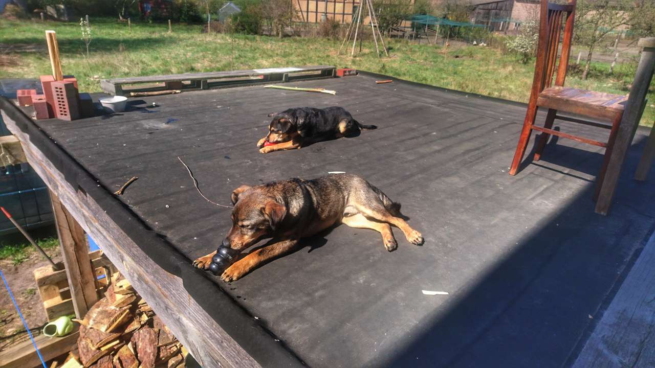 Mit unserer nicht ganz einfachen Ersthündin klappt es auch immer besser. Für ihre Verhältnisse kommt sie sehr gut mit ihm zurecht, und er ist wirklich über alle Maßen geduldig. Hin und wieder wird mal gemeinsam durch den Garten geflitzt oder "ausversehen" gekuschelt. Im Zweifelsfall wissen sie scheinbar ganz genau, dass sie zusammen gehören.