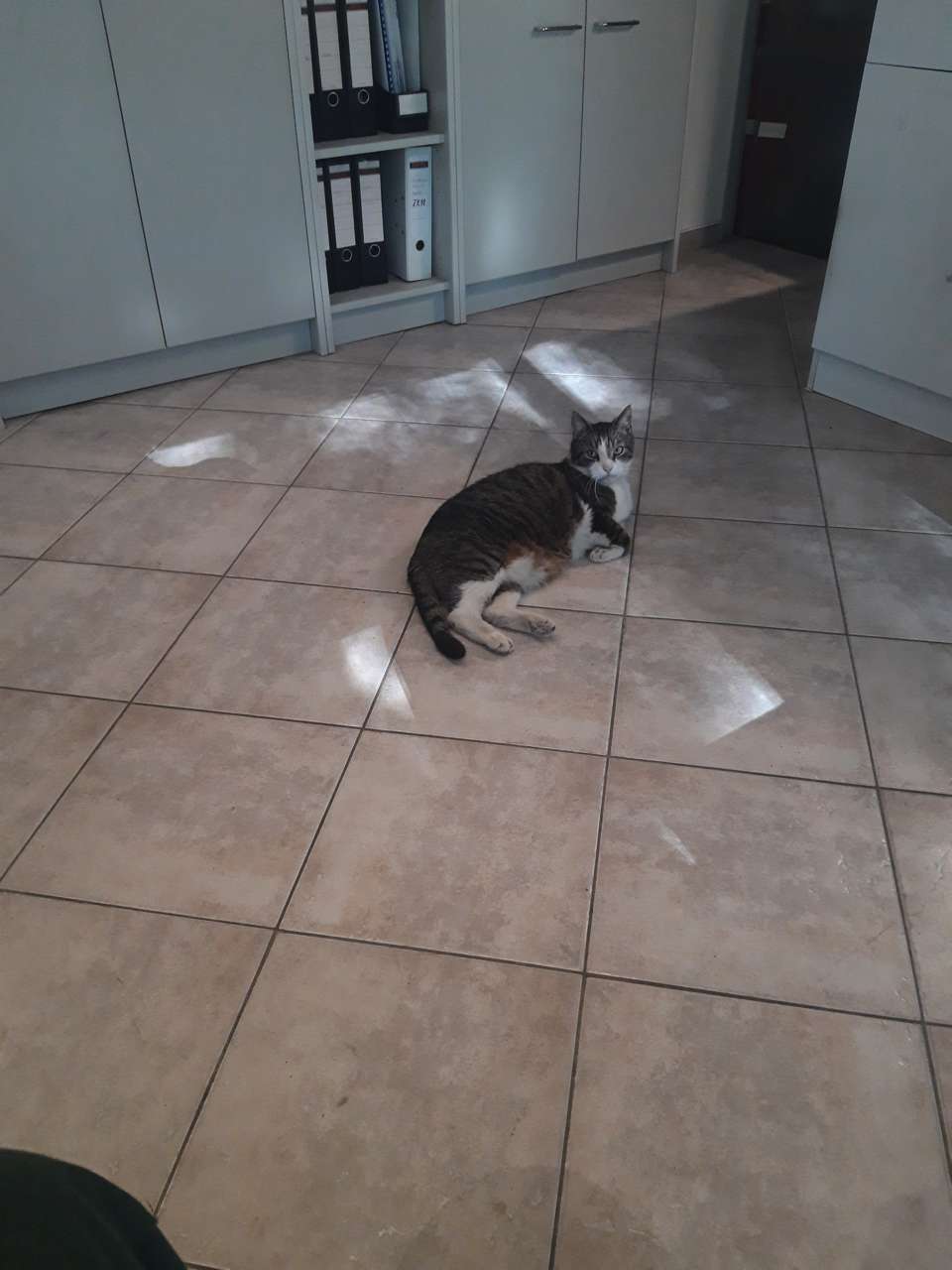 Beide sind gesund und munter. Checker ist sehr viel draußen und bringt regelmäßig seine erbeuteten Mäuse ganz stolz ins Büro. Enno ist lieber im warmen und trockenen Büro oder in der Werkstatt. Da merkt man, dass er schon etwas älter ist.