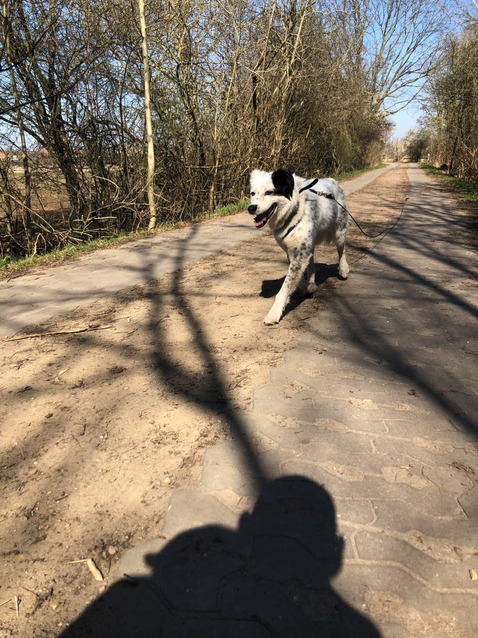 Morgens gehen wir, bis auf Sonntag, jeden Morgen zwischen 8-15km joggen. Die ersten Wochen hatte er überhaupt keine Kondition und wollte nach ein paar Km unbedingt zurück. Ich dachte, dass ihr vergessen habt, mir Batterien für ihn mitzugeben. :) Mittlerweile findet er es super zu laufen. Wir haben eine gewohnte Strecke, die läuft er nun auch ohne Schleppleine, bleibt an meiner Seite, oder kommt auf Pfiff. Einmal in der Woche laufen wir etwas weiter und eine unbekannte Strecke. Das ist immer eine Herausforderung für ihn.Vielen Hunden geht er aus dem Weg, mit einigen spielt er auch. Um Menschen macht er einen großen Bogen.