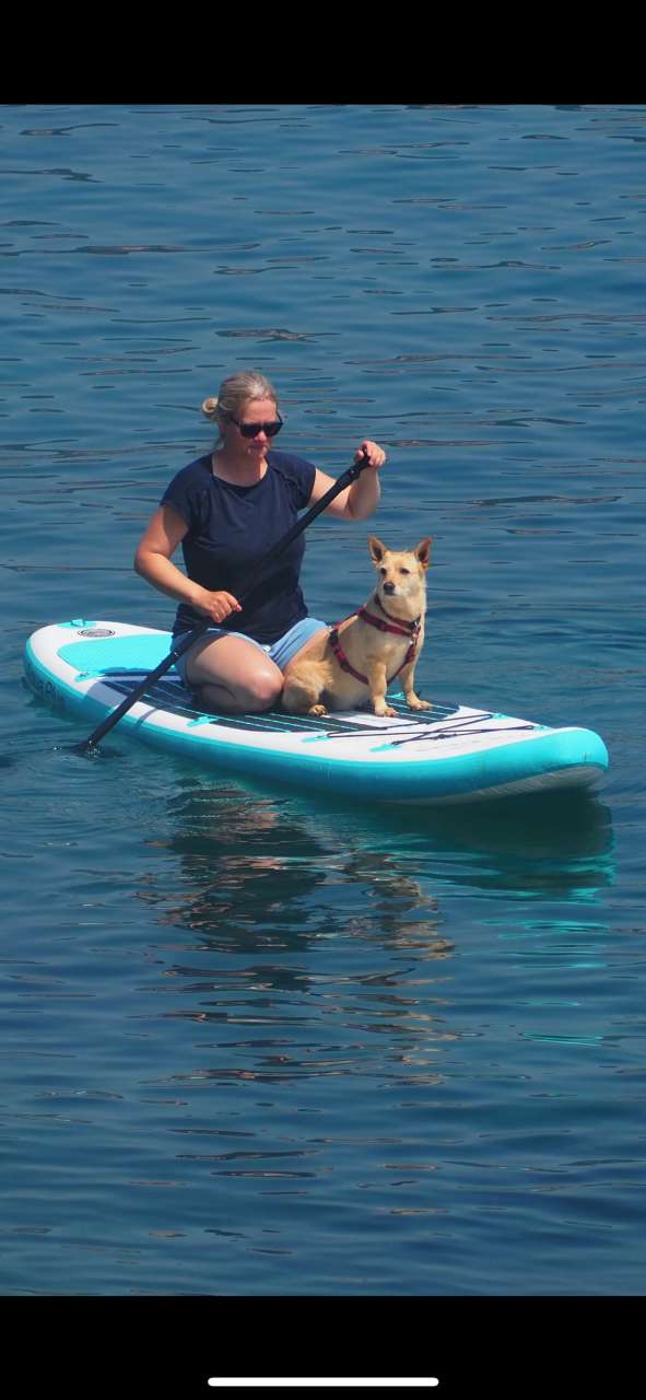 Das coolste war aber für mich: ich bin ganz freiwillig mit auf das SUP Board gestiegen und dann wurde ich von einer Bucht in die andere kutschiert. Ich hatte keine Angst da ich meinem Frauchen vertraue und wir hatten viel Spaß und haben alles erkundet. Dieses Jahr werde ich 12 und ich bin ein wenig ruhiger geworden aber mir geht es gesundheitlich sehr gut. Ich brauche nur nicht mehr ununterbrochen Action und genieße immer mehr auch die gemütlichen Momente. Ich bin  immer noch fast täglich bei den Pferden und als Chefin habe ich immer den Überblick und ich habe viele Gasthundekumpel dort mit denen ich spielen kann. Sonst bin ich auch gerne bei meinem Frauchen Alex auch mal zu Hause wenn sie Homeoffice macht und das ist ein guter Ausgleich und wir sind dann immer viel unterwegs und machen wunderschöne Spaziergänge und genießen mal die Ruhe.