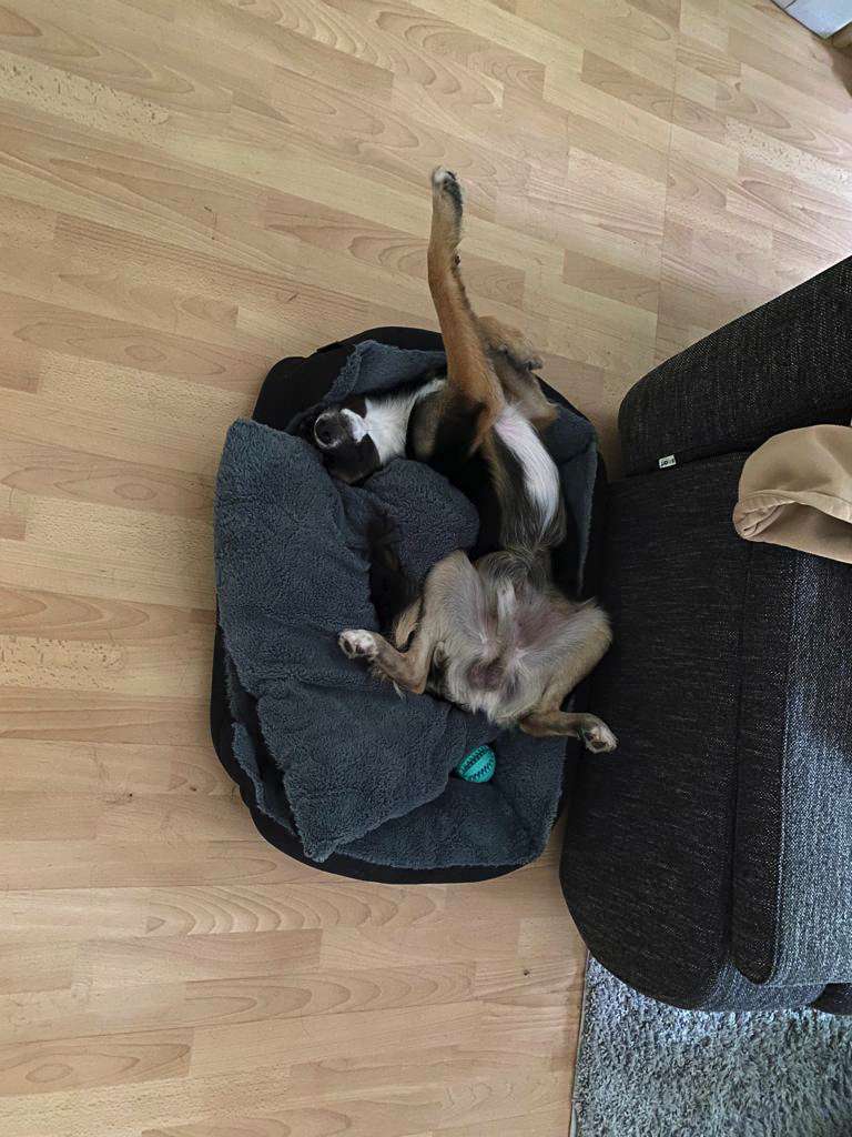 Fred (Freddy) ist heute seit genau 7 Wochen bei uns. Er hat sich sehr gut eingelebt, war bereits nach 10 Tagen stubenrein und bringt uns sehr viel Freude! Besonders seine Schlafpositionen bringen uns immer wieder zum lachen.