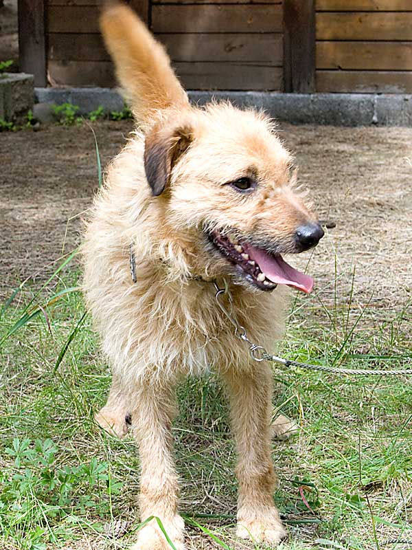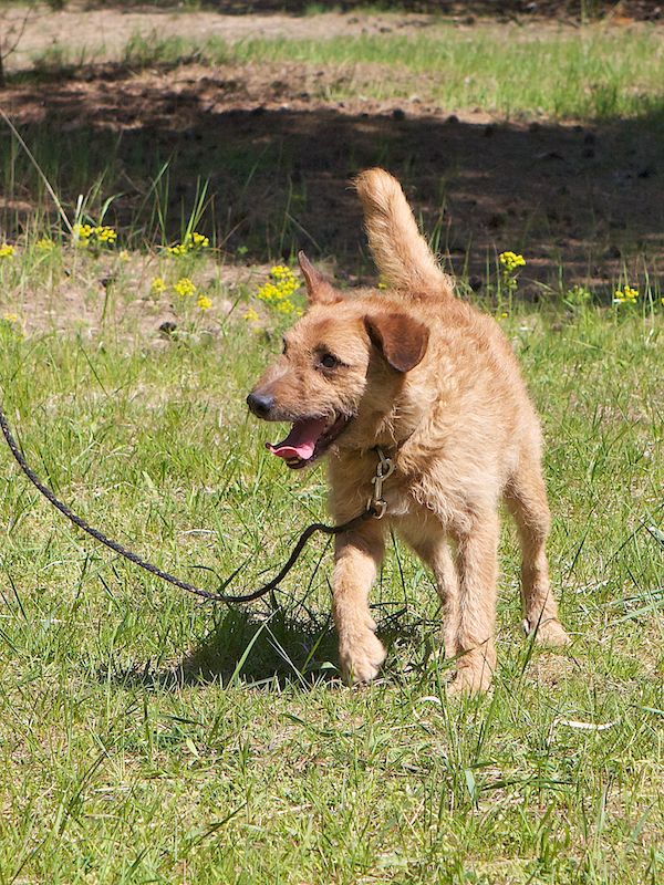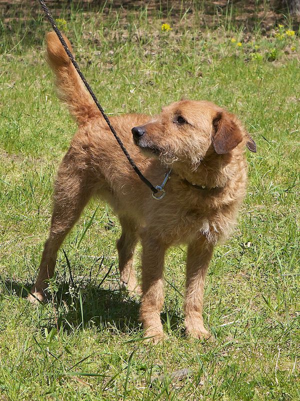Mounty ist ein netter vierjähriger Terrier-Mix. Als echter Mann liebt er Frauen und folgt ihnen auf's Wort (Männern auch - aber etwas später). Nun hat er ein eigenes Frauchen in Potsdam gefunden. Für ihn war die Sache nach einem Probe-Spaziergang sofort klar: das passt. Er adoptierte sein neues Frauchen im Handumdrehen, schickte bellend alle Pfleger weg und genoss die Streicheleinheiten und Leckerli, die es jetzt ausschließlich nur noch für ihn gab und die er mit niemandem mehr teilen musste.