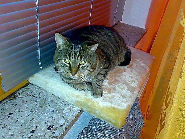 Er ist wirklich sehr lieb, treudoof und anhänglich. Er liegt sehr gerne auf dem Festerbrett und schaut raus. Auch zum Spielen kann man ihn das eine oder andere mal animieren. Er frisst normal und ging bereits am ersten Abend ohne Probleme aufs Katzenklo. Zwei Tage hatte er etwas Durchfall, ist aber wieder alles ok. Ich denke, dass es durch die Futterumstellung war.Unsere kleine Katze Ruby nähert sich ihm langsam aber sicher auch an. Sie knurrt und faucht ihn zwar noch öfters an, aber legt sich auch mal wieder zu uns dazu, selbst wenn Spike schon bei uns liegt. Er reagiert ja auch sehr entspannt auf sie. Sie knurrt, er dreht sich um und geht. Prügeleien gab es auch keine.