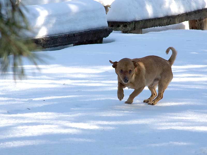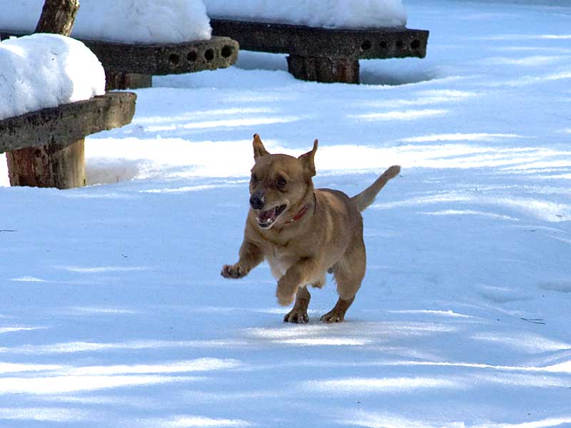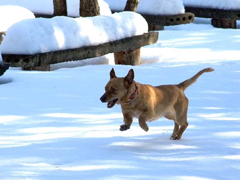 Knut - ein kleiner Dackel-Mischling - tobte nochmal ausgiebig auf unserem Gelände, bevor ihn seine neuen Besitzer abholten.