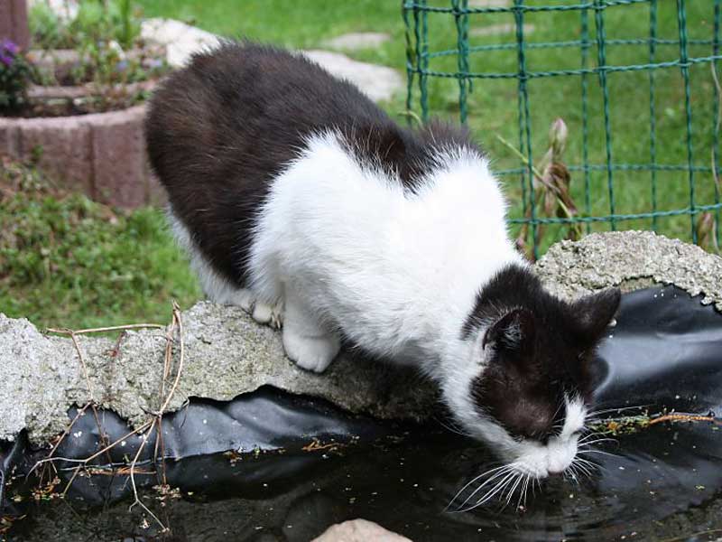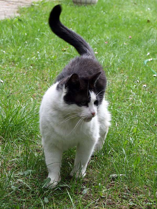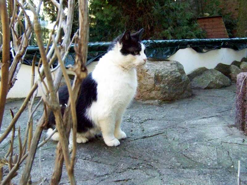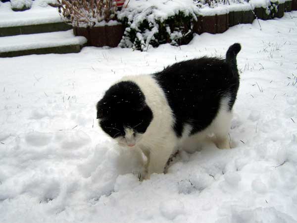 Leopold musste dieses komische weiße Zeug mal genauer betrachten, dreht gern auch so 10 Minuten seine Runde, zieht es aber dann doch vor von drinnen zu schauen.