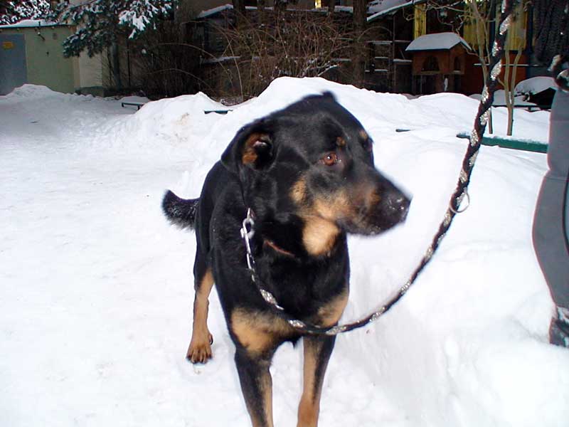 Offensichtlich hatte es der etwa dreijährige Rottweiler-Mix bisher nicht gut getroffen.