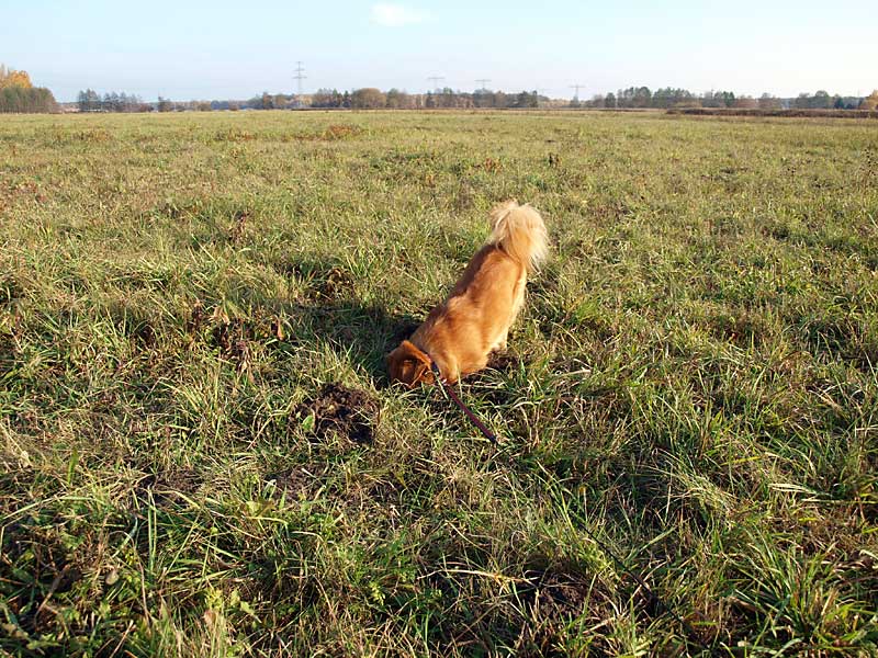 Jeden Tag laufen wir zum Kanal und gehen stundenlang an den Feldern und Waldstücken spazieren. Dort treffe ich viele meiner neuen Hundefreunde zum Toben (Wettrennen finde ich irre, habe den Beinamen Speedy), Löcher buddeln, Wälzen, Schnuppern, Krähen jagen und was Hund noch so alles macht.