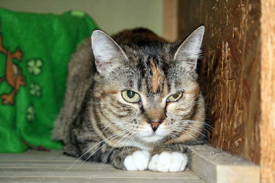 Streifchen hat eine ganz besondere Fellzeichnung und sollte doch einen Liebhaber finden, auch wenn sie noch recht scheu ist.