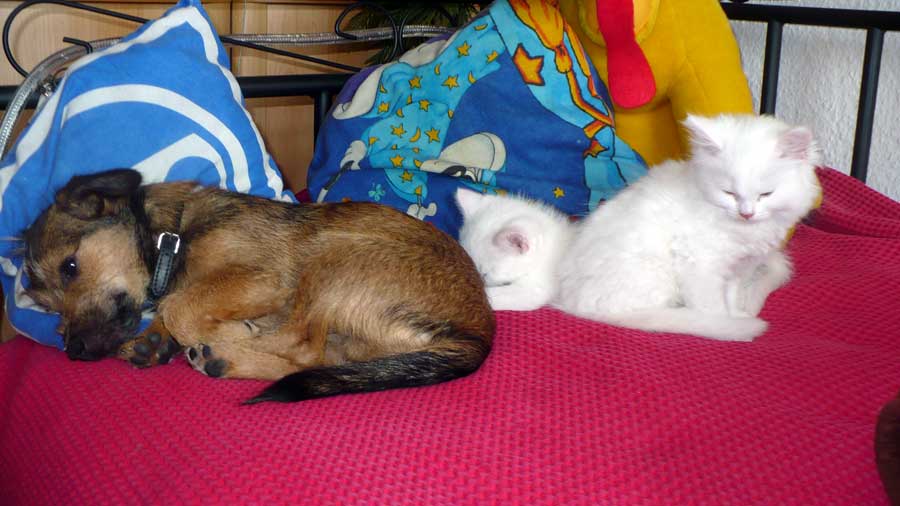 Das war eine Aufregung, der Umzug von Euch allen in unsere neue Familie nach Potsdam. So viele neue Gerüche, neue Geräusche und Katzen gibt es hier auch. Alles war so neu, aber es gibt hier unwahrscheinlich viel Liebe, Streicheleinheiten und Verständnis. Uns geht es hier jetzt richtig gut. Wir haben hier Freunde gefunden und haben nun richtig Spaß.