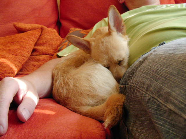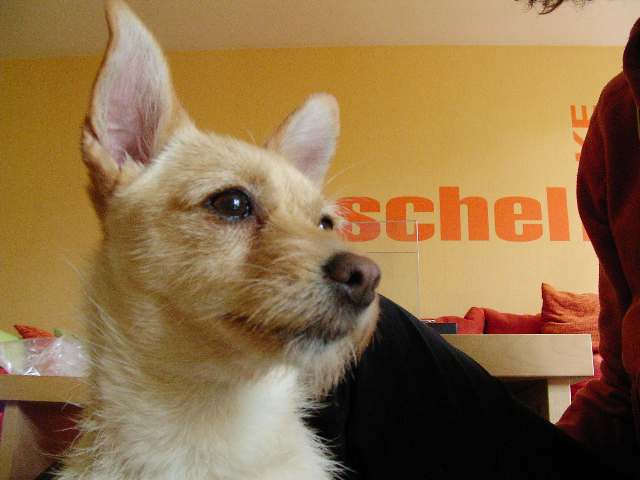 Wir sind schon ganz stolz, dass sie Sitz und Platz gelernt hat und die Bedeutung von Pfui und Nein kennt. Der Tierarzt hat ihr jetzt eine gute Gesundheit bescheinigt, der Zahnstein ist dank Trockenfutter (ja auch wenn ihr erstaunt seid - sie frisst es) fast Geschichte und die leichte Bindehautentzündung durch Eigenhaare bekommen wir durch "Scherenschnitt" auch hin. Den Durchfall, den sie bei euch hatte, haben wir dank Spezialfutter auch besiegt.