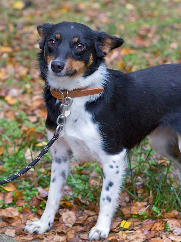 KiniKini ist ein Terriermischling. Die junge Dame ist neugierig und spielfreudig, springt und tobt gern.  Aber sie hatte offensichtlich bisher nicht ausreichend Kontakt zu Menschen und näherte sich Fremden deshalb vorsichtig.