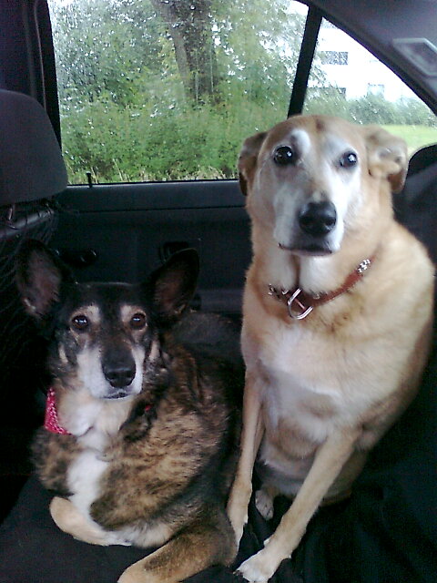 Herrchen und Frauchen lassen uns nie alleine. Wir können überall immer mit Auto mitkommen. Das Autofahren macht mir immer sehr viel Spaß (siehe Bilder). Damit fahren wir dann auch manchmal zu meiner neuen Ärztin. Wenn ich untersucht werde ist Easy auch dabei und wenn Easy untersucht wird, passe ich dann auf. Wir bekommen dann beide danach immer ein Leckerchen.