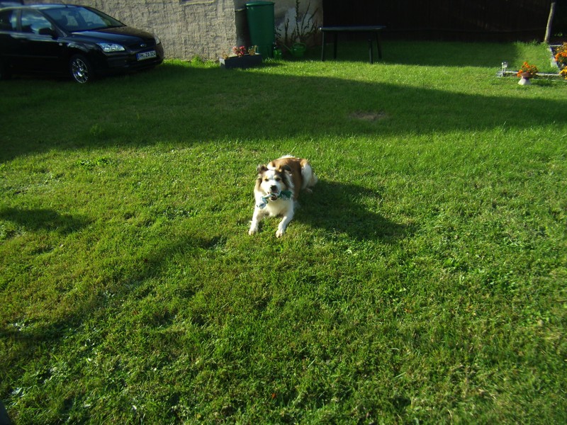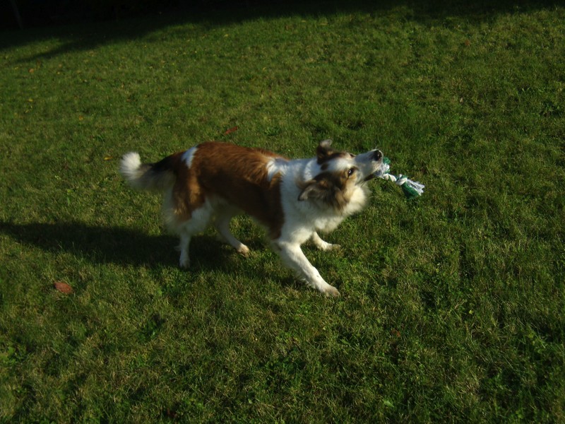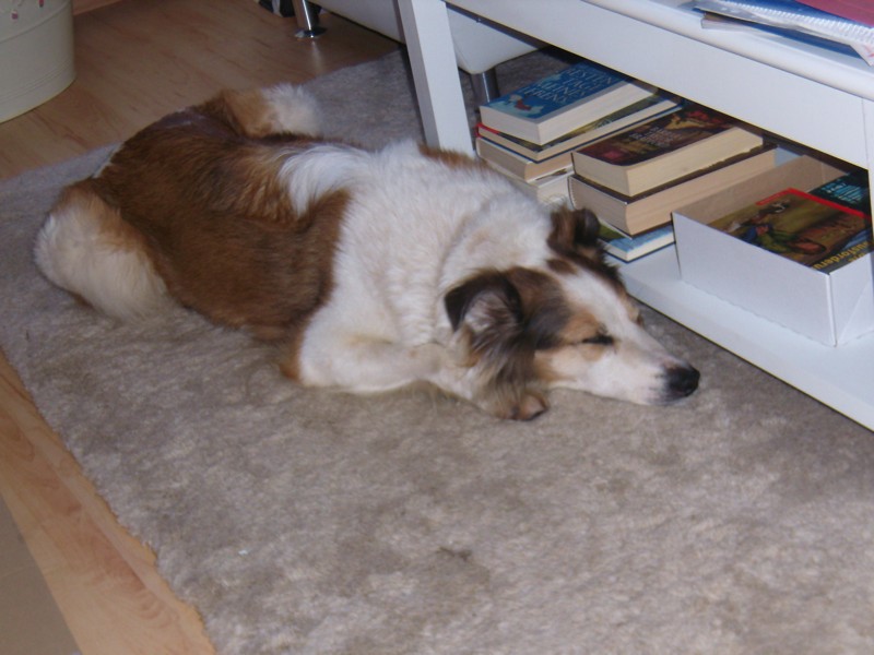 Seit wir Elli am Samstag, den 8. Oktober aus dem Tierheim Verlorenwasser abgeholt haben, hat sie sich toll eingelebt. Kaum waren wir angekommen, fühlte sie sich gleich wie zu Hause und tollte durch den Garten. Gefressen und getrunken hat sie von Anfang an. Sie genießt sichtlich die Aufmerksamkeit und ist stets darauf bedacht, alles richtig zu machen und ihren Menschen zu gefallen. Ihre Lieblingsbeschäftigung ist ganz eindeutig das Kuscheln, sie schmiegt sich um die Beine wie eine Katze. Mit ihrem Hundespielzeug jagt Elli gern durch den Garten und schleudert es “gekonnt” umher. Auch lange Spaziergänge sind kein Problem. Beim Tierarzt-Besuch gestern war sie sehr artig und und außer den schiefen Zähnen war nichts zu bemängeln. Alle Personen, denen sie begegnet, finden sie sehr hübsch und niemand schätzt ihr Alter auf 10 Jahre! Obwohl ihr eine Hundehütte und ein kuscheliger Hundekorb zur Verfügung stehen, zieht sie es doch vor, auf dem Teppich neben der Couch zu liegen und mit uns Fernsehen zu schauen. Auch das Verhältnis zu unserer Katze bessert sich täglich. Hat Elli sie am ersten Tag auf den Baum gebellt, dulden die beiden sich jetzt schon in einem Zimmer. Wir sind auch im Nachhinein sehr froh darüber, sie adoptiert zu haben und ihr einen schönen Lebensabend bei uns bieten zu können.