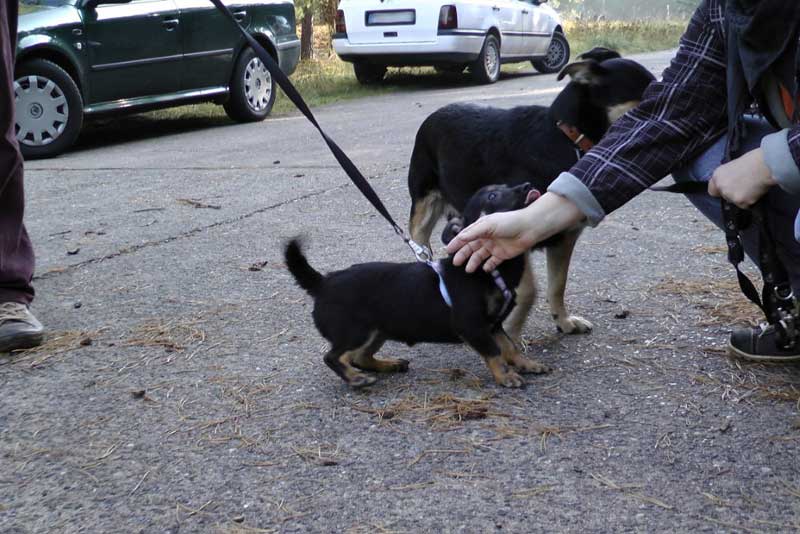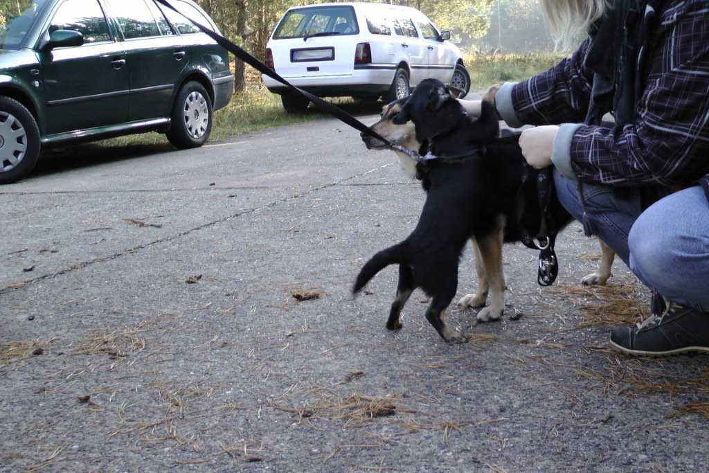 Bambina Mila wurde von einer Familie aus Strausberg adoptiert. Sie hatten vor zwei Jahren bereits eine Hündin von uns übernommen. Die zurückhaltende Nora erhält nun ein kleines Energiebündel an die Seite. Wie man sieht, setzt Mila alles daran, sich nicht nur bei Nora, sondern auch bei ihrem neuen Herrchen und Frauchen einzuschmeicheln.