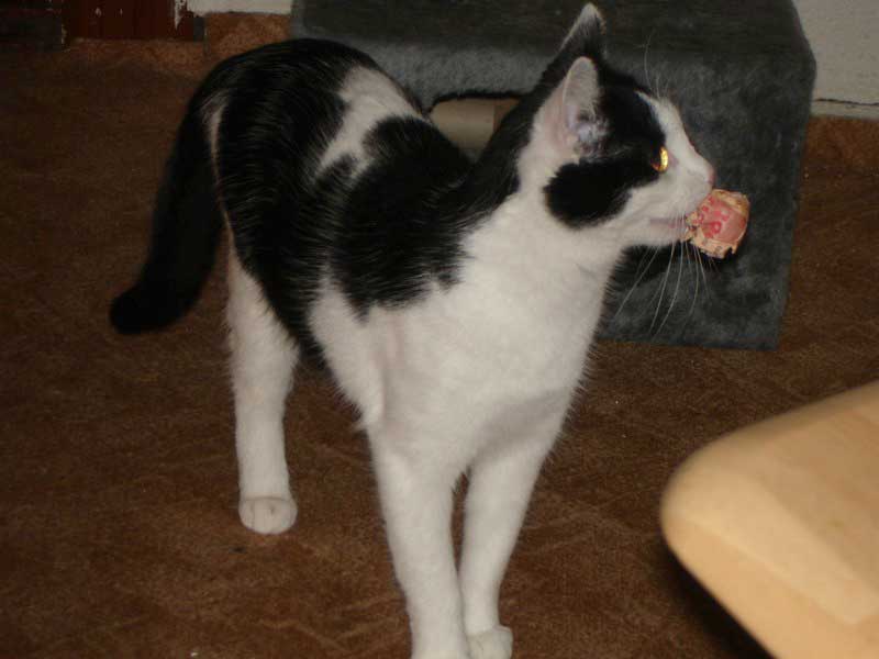 Ich schleppe auch gerne kleine runde Kugeln durch die Gegend. Frauchen wirft die Kugeln dann immer weg und ich hole sie ihr dann wieder zurück. Das könnte ich den gaaaanzen Abend machen. Was ich bis jetzt auch erfolgreich geschafft habe.