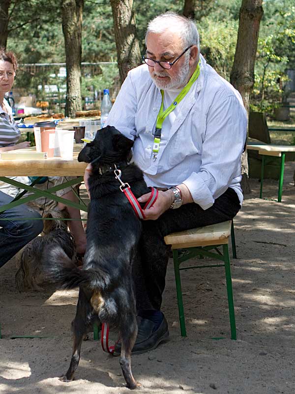 Franky ist ein unkomplizierter Hund, ganz lieb und verschmust, wie schon unser Schirmherr Udo Walz beim Sommerfest bemerkte.