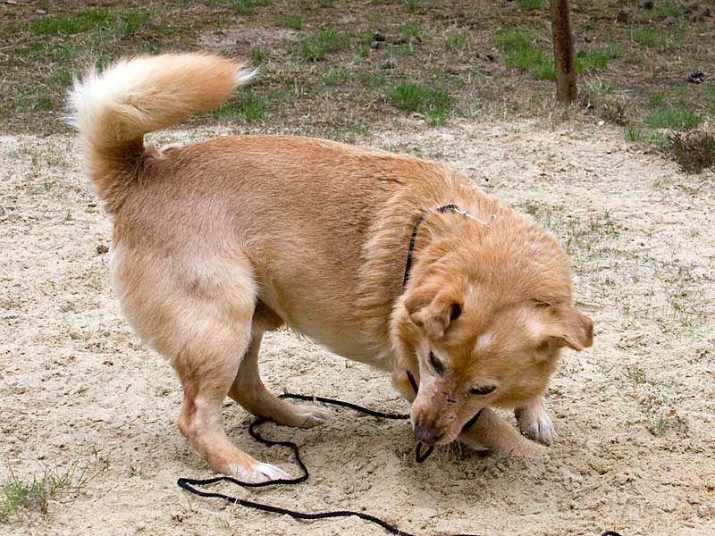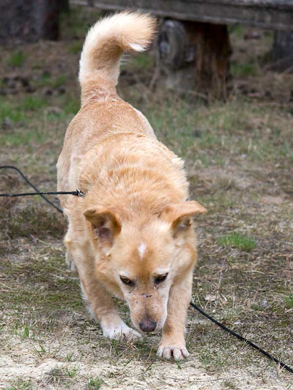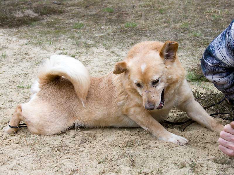 Als er zu uns kam, hatte er Probleme mit einem Vorderbeinchen und humpelte: das Ellbogengelenk war ausgehakt. Die Operation, die wir in einer Spezialpraxis durchführen ließen, brachte leider nicht den gewünschten Erfolg. London schien immer noch Schmerzen zu haben, so dass wir leider an eine Amputation des Beines denken mussten. Doch vorher wollten wir noch Physiotherapie ausprobieren.