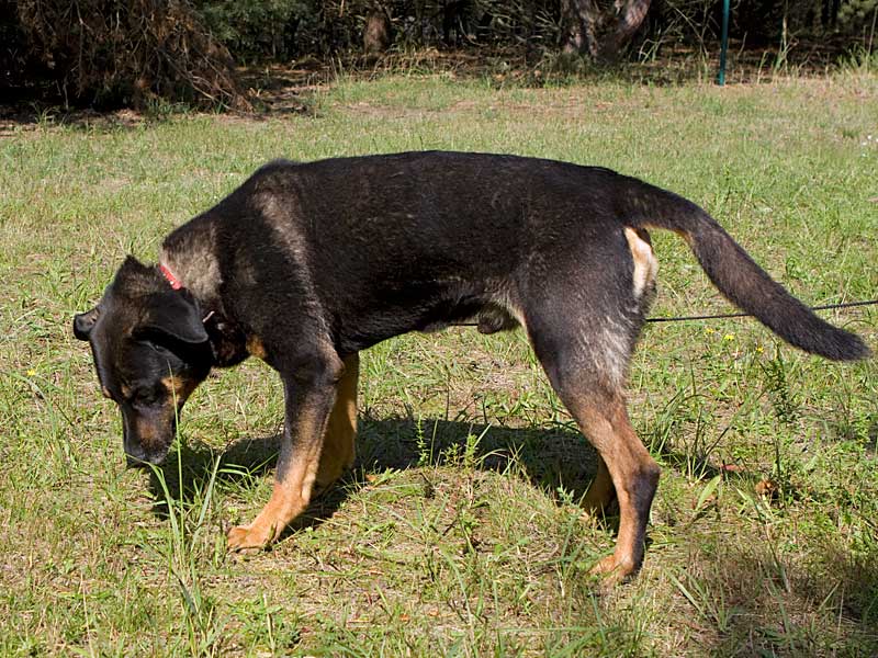 Er lebte bei uns mit Trevor gemeinsam in einem Zwinger. Da Trevor etwas unsicherer war als Spencer, konnte er bei dem ausgeglichenen Spencer gut Halt finden.