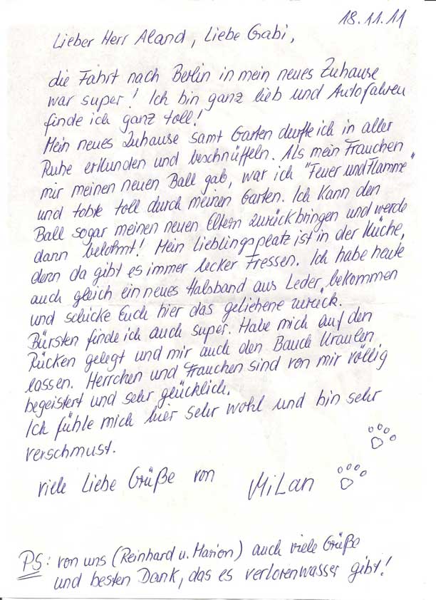 Milan konnte nach Berlin umziehen und hat sogar schon ganz schnell den ersten Bericht geschickt, den wir mit großer Freude gelesen haben!