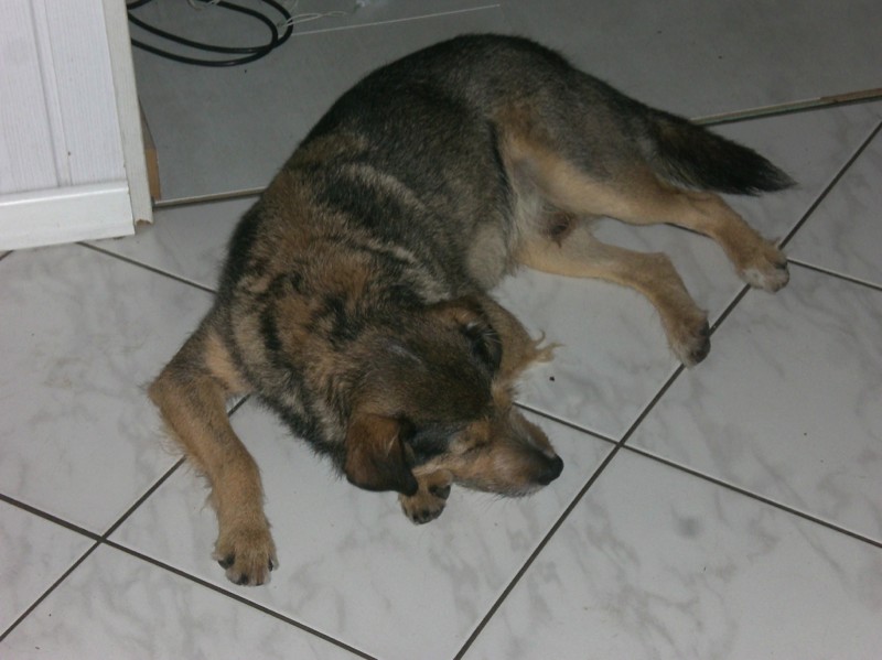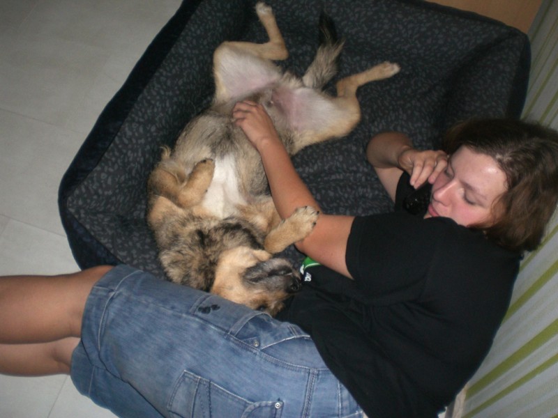 anbei ein paar Fotos von Benny. Er hat sich gut eingelebt und hat wie man hoffentlich sieht seinen Pelz beim trimmen verloren. Er kann jetzt Auto fahren und läuft an einer 10m Schleppleine. Nächste Woche beginnt sein Antijagdtraining und Ziel ist eindeutig, dass er ohne Leine laufen kann.