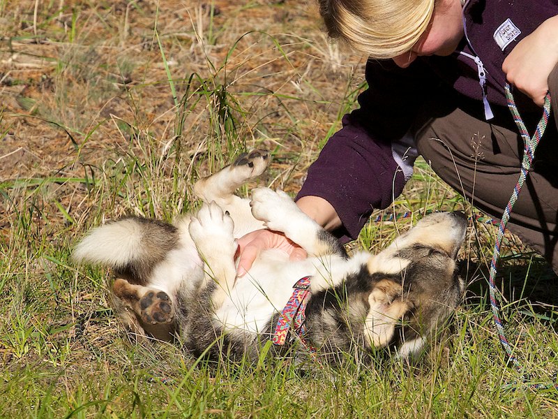 Unterwegs spielt er auch gern: Stöckchen, Bälle - alles wird dankbar angenommen. Wenn man sich ihm zuwendet, freut er sich total und dreht richtig auf.