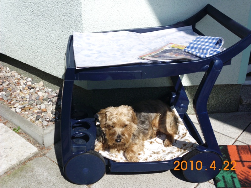 Meinem Frauchen geht es bisher in diesem Halbjahr gesundheitlich nicht so gut, daher haben wir uns so lange nicht gemeldet. Mir geht geht es ganz prima, fühle mich richtig wohl. Für die schönen und evtl. auch heißen Tage habe ich mir schon einen Sommersitz ausgesucht, wie Ihr auf dem beiliegenden Foto sehen könnt.In ein paar Tagen (am 15.06.) feiern wir meinen 1. Geburtstag hier. Sicherlich gibt es dawieder ein paar tolle Leckerli´s. Wenn es Frauchen wieder richtig gut geht und schönes Wetter ist, wollen wir Euch wieder besuchen kommen.
