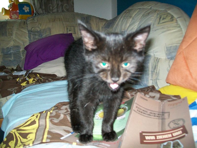 Ab und an müssen meine "Eltern" noch auf mich aufpassen, denn beim Toben mit meinem grossen "Bruder" spielen wir uns in Rage.Das sieht für die Zweibeiner manchmal ganz schön gefährlich aus.Wenn ich nicht gerade schmuse,tobe oder schlafe,könnte ich die ganze Zeit fressen.