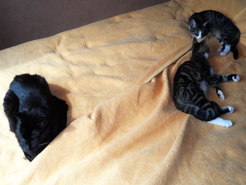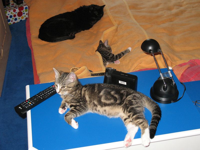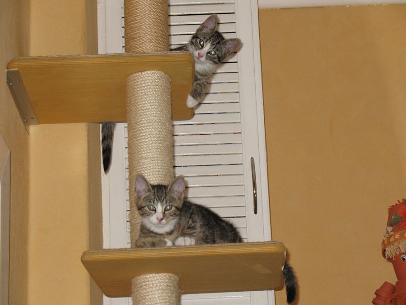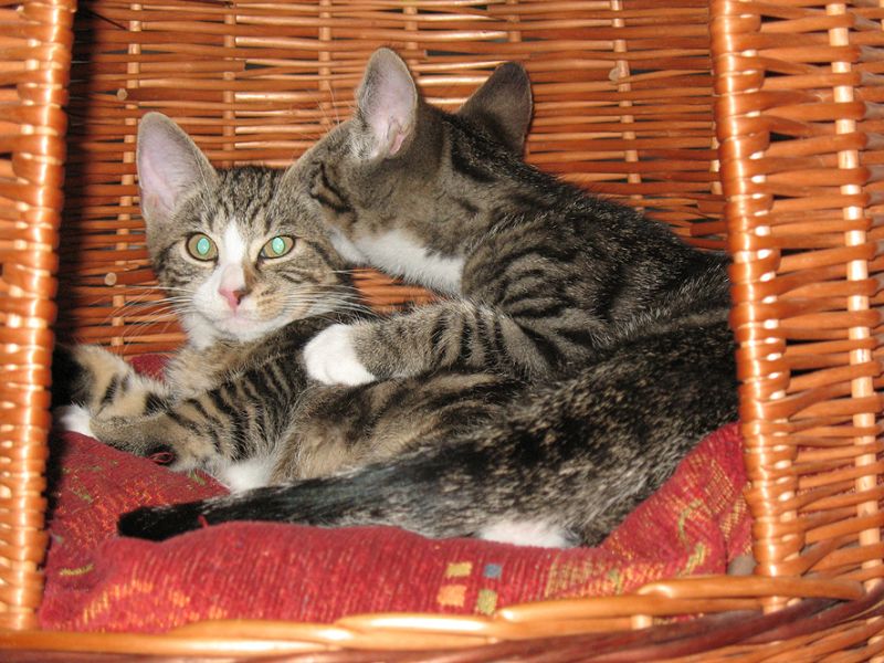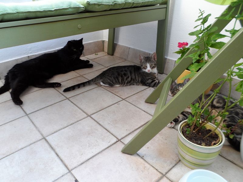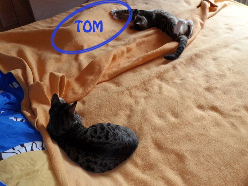 wir, Cosmo (rechts) und Nicos (vorher Sixtus, links) sind am 16.6.2012 bei unseren Adoptiveltern und dem schwarzen Alt-Kater Tom eingezogen.
