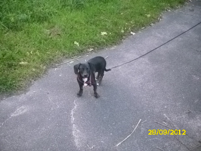 Da Kelly erst mal die Umgebung kennen lernen muss und da sie noch recht unsicher ist, ist sie erst mal noch an der langen Schleppleine.