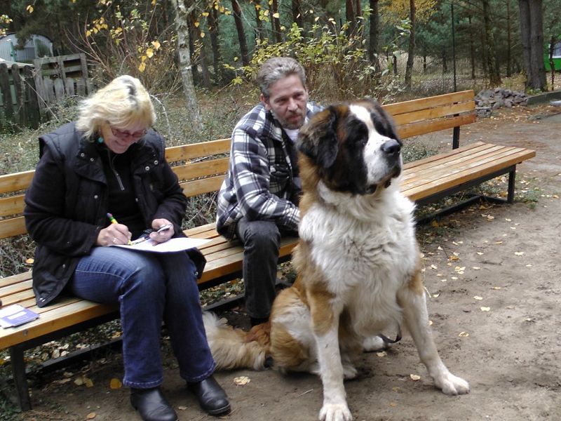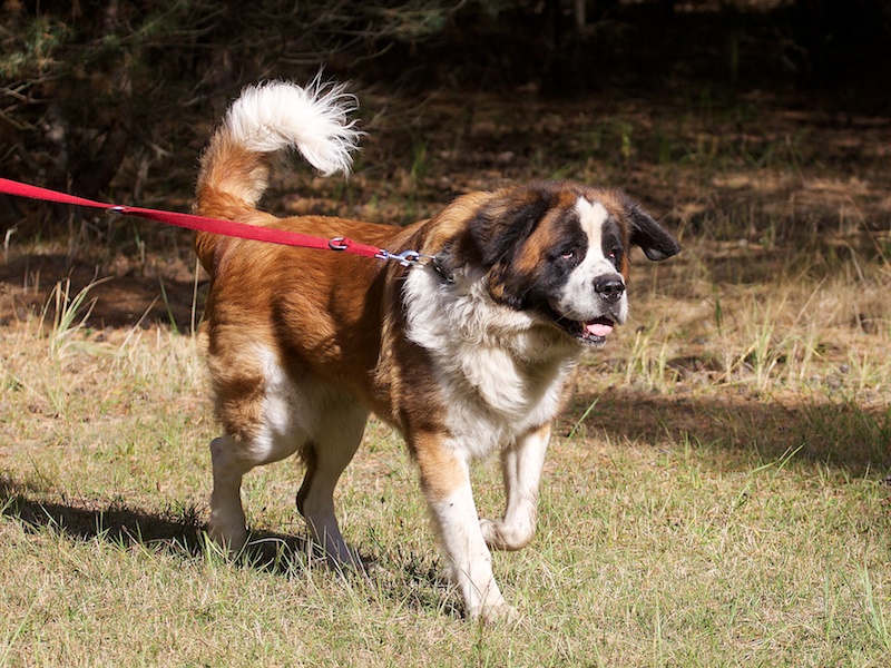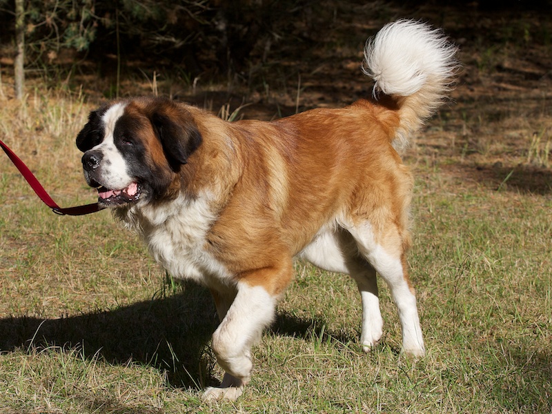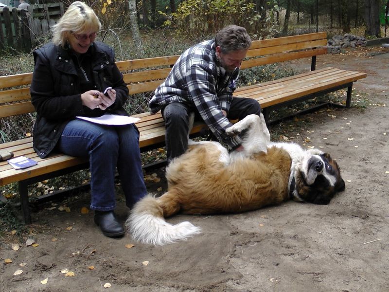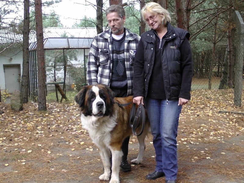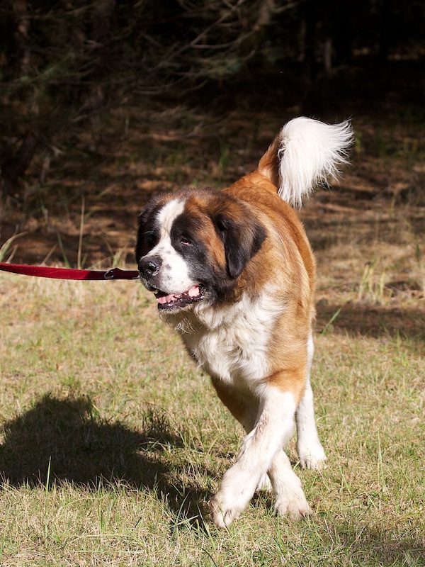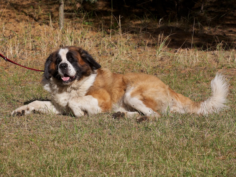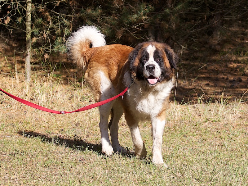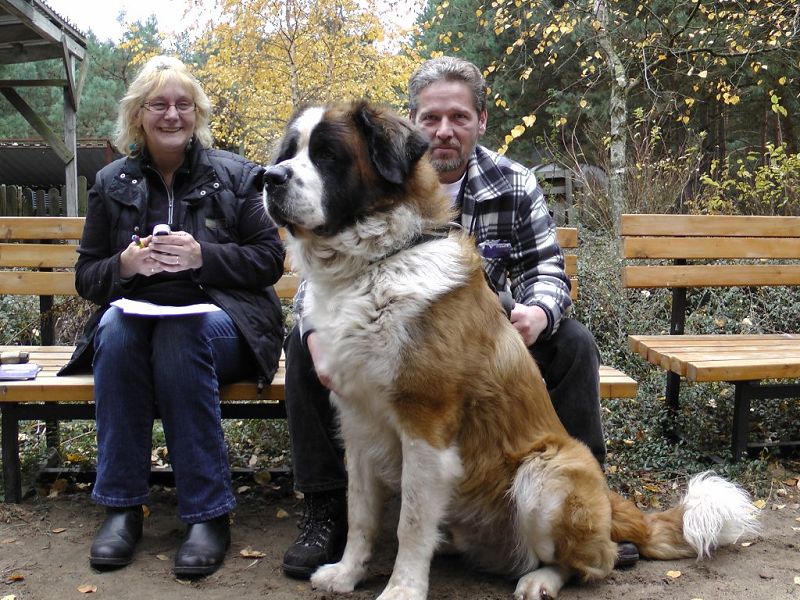 Dieser Bernhardiner ist ein wachsamer Hund. Er nimmt seine Umgebung vorsichtig-ängstlich wahr und schlägt an, wenn er etwas nicht kennt.