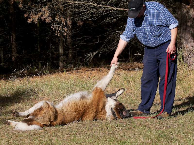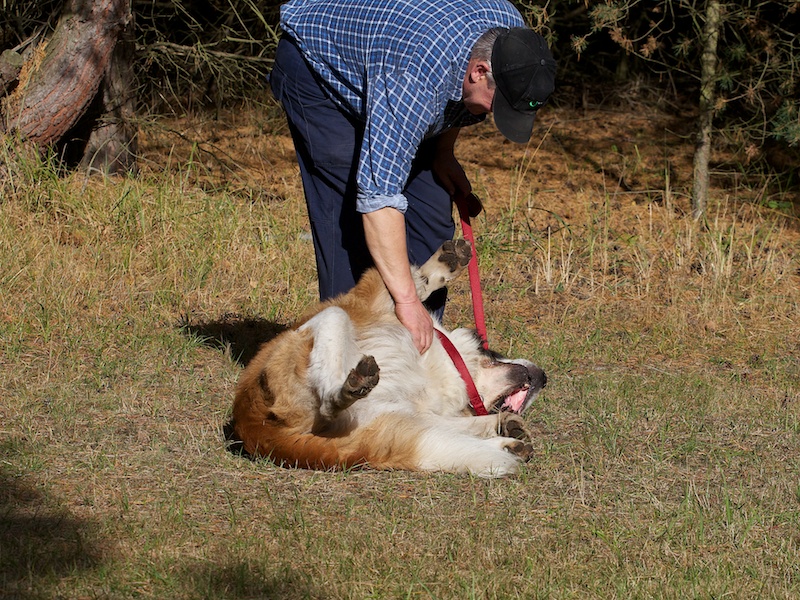 Aaron lässt sich gut handhaben. Er kennt die Grundkommandos, auch wenn er in seiner behäbigen Art etwas länger braucht, um darüber nachzudenken, ob es ihm wirklich notwendig erscheint, die Ansagen seines Herrchens oder Frauchens gleich umzusetzen.