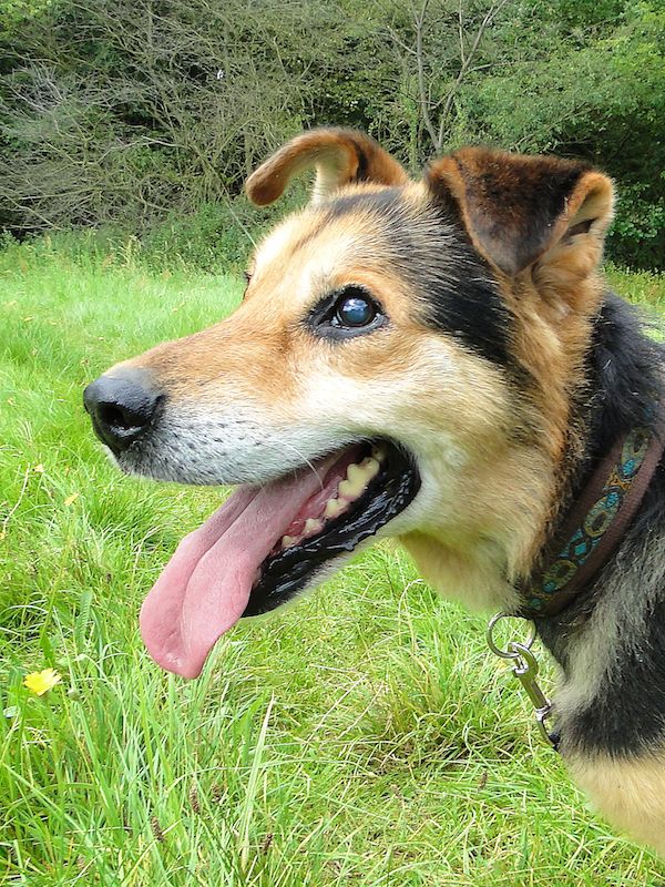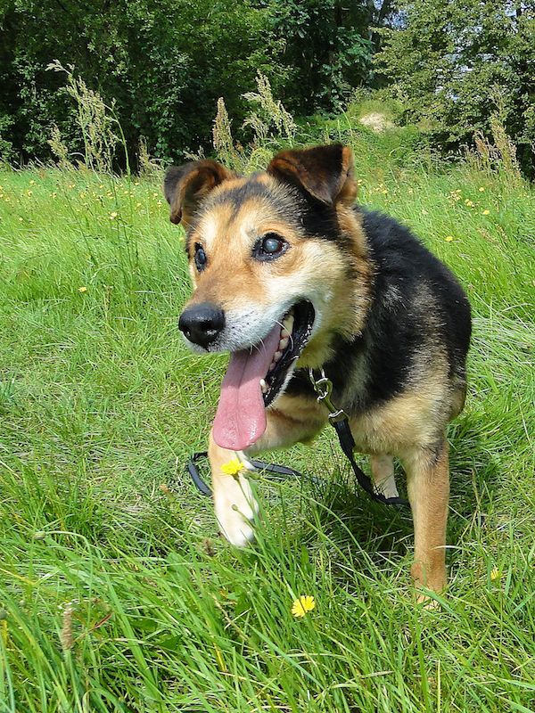 Der Schäferhundmischling ist einer der liebsten Hunde, die wir je hatten. Er selbst hält sich wohl für einen Chihuahua, denn er möchte wie ein kleiner Schoßhund wirklich am liebsten auf den Schoß seines Menschen kriechen. Er ist total verschmust und umarmt seinen Menschen regelrecht. Der enge Kontakt ist ihm wohl aufgrund seiner Blindheit so wichtig.