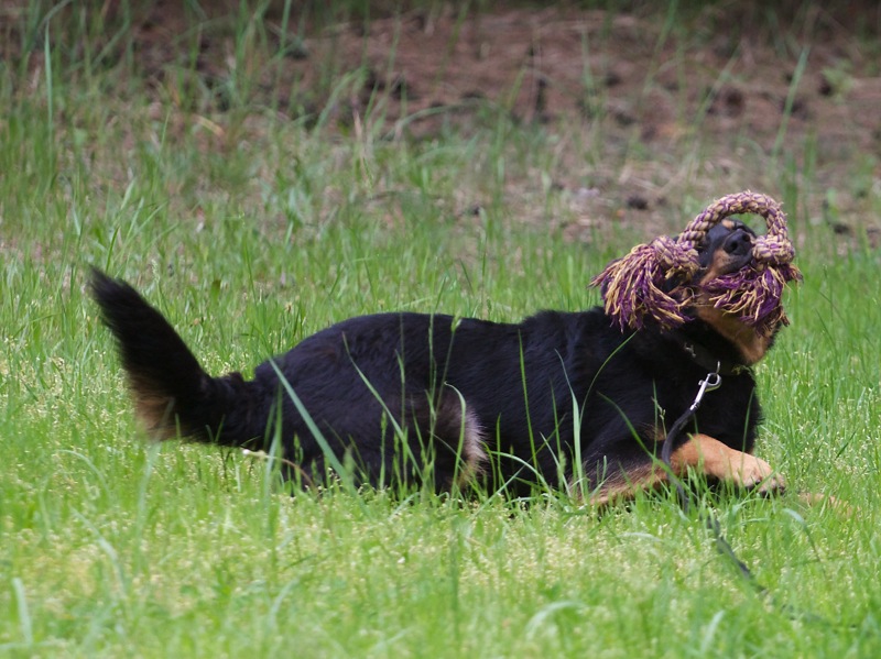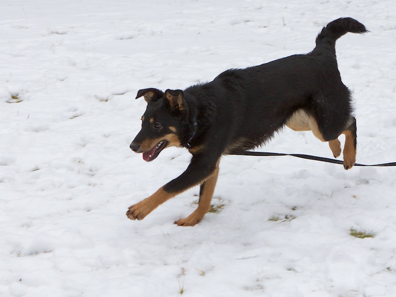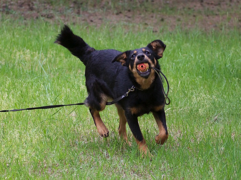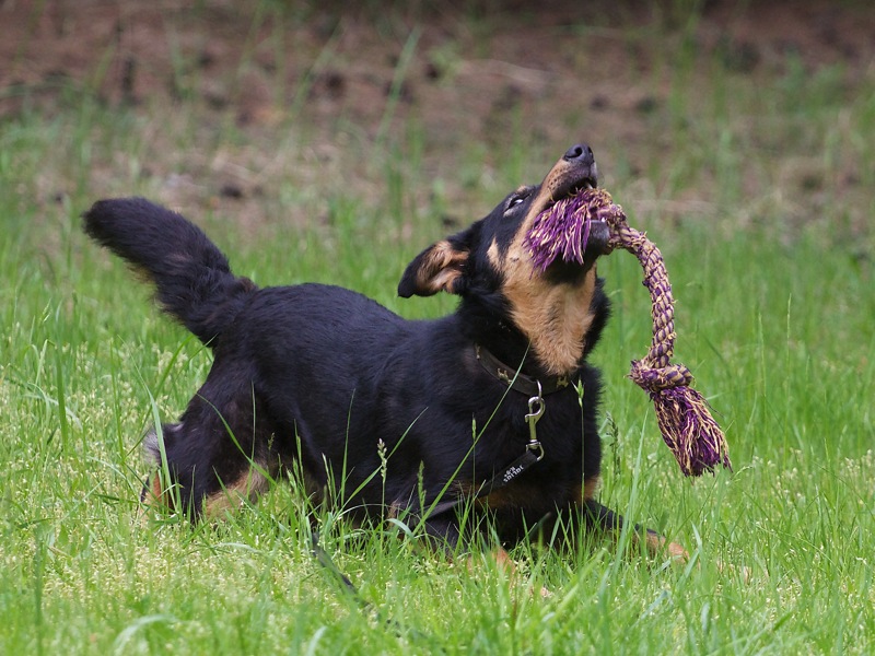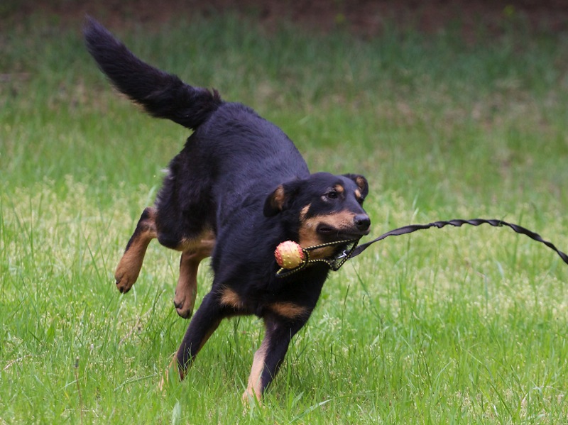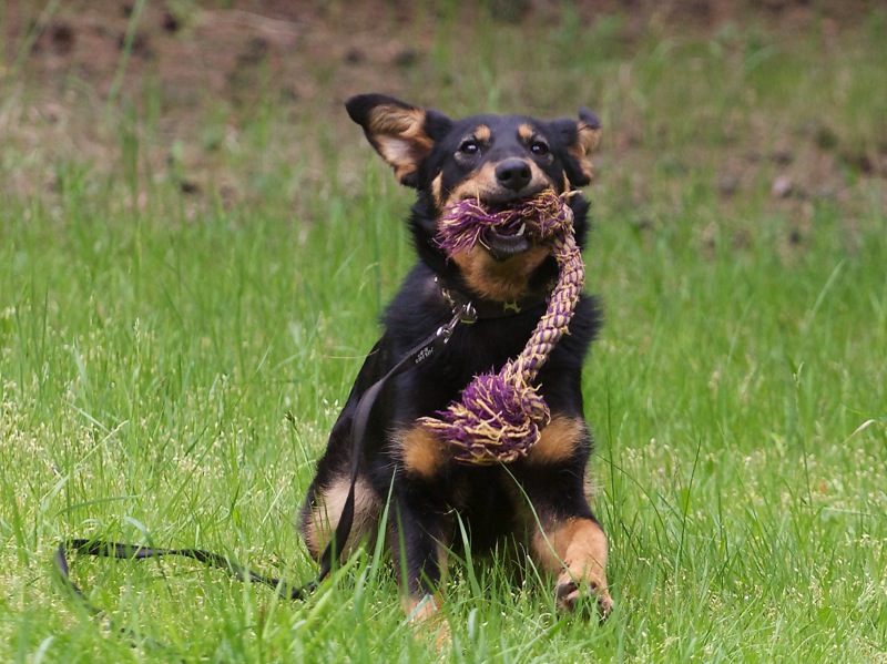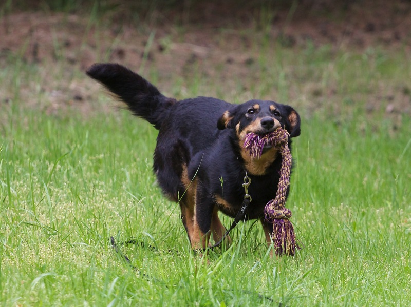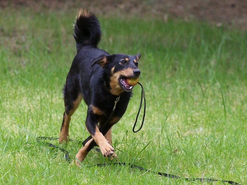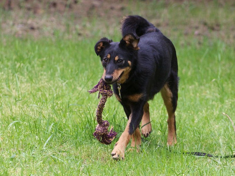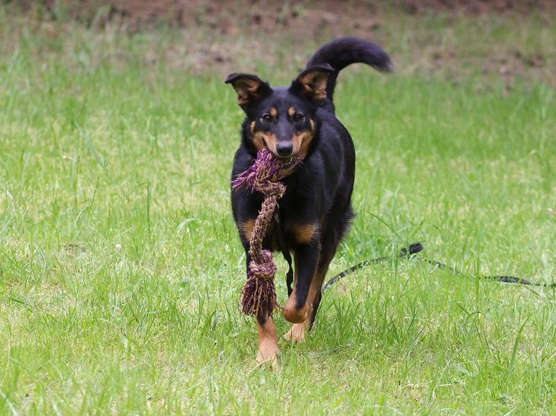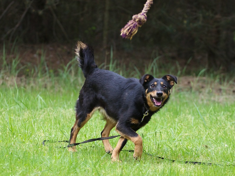 An ihrem neuen Wohnort gibt es glücklicherweise einen Spielgefährten, der beim Herumtollen seinen Teil zur Auslastung der dynamischen Hündin beitragen wird.