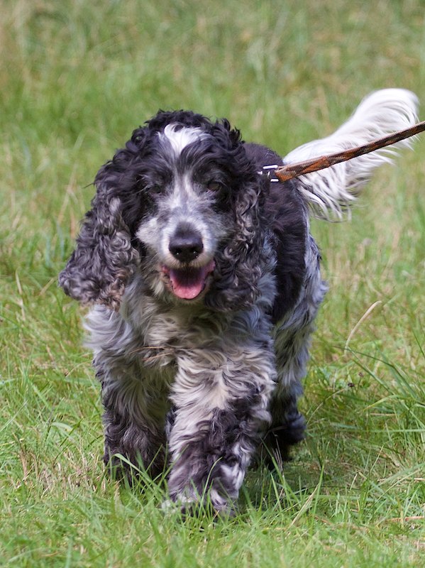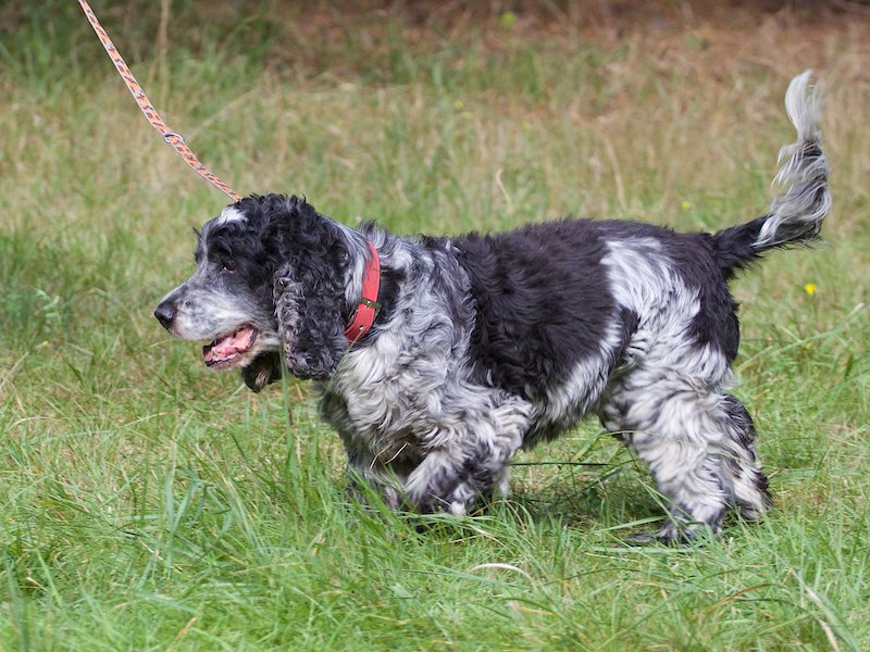 Cocker Rocky hatte es mit seinem hübschen Aussehen und seiner interessanten Felllzeichnung leicht, ein neues Zuhause zu finden. Außerdem ist er ein sehr freundlicher Hund.