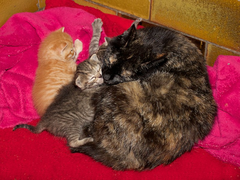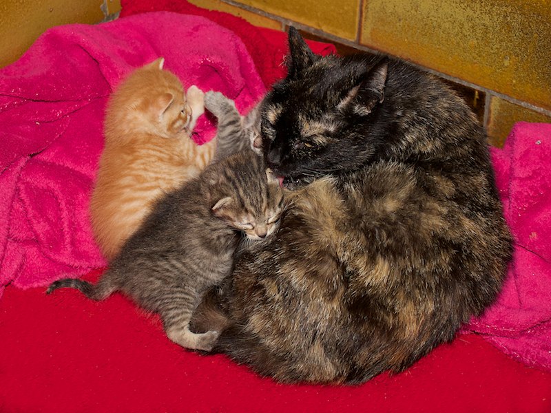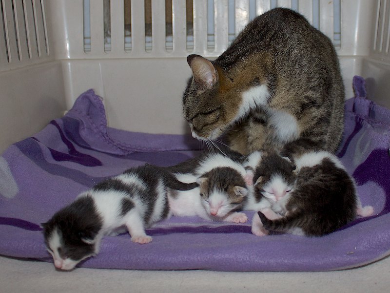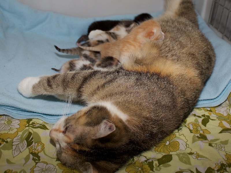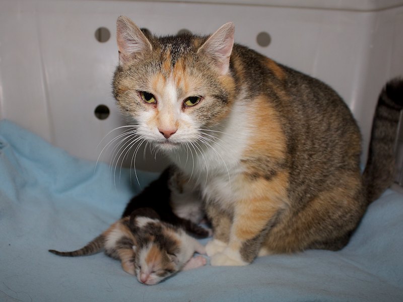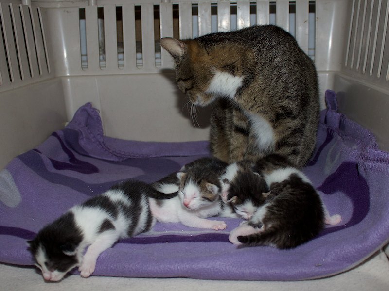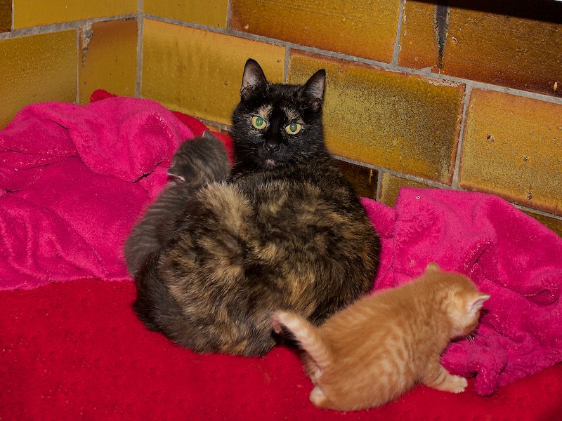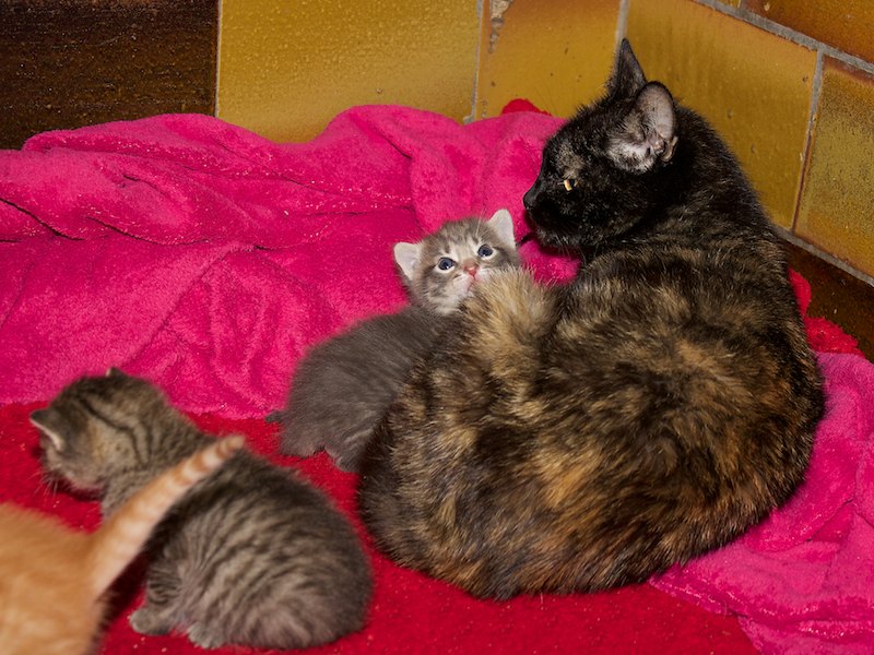 Oftmals kommen die Muttertiere krank und angeschlagen von der Straße oder aus schlechter Haltung zu uns. Unsere Tierärztin und unsere Mitarbeiter müssen dann mit viel Einsatz versuchen, was nur irgend geht. So wird auch oft zugefüttert, damit es alle schaffen.