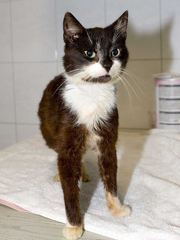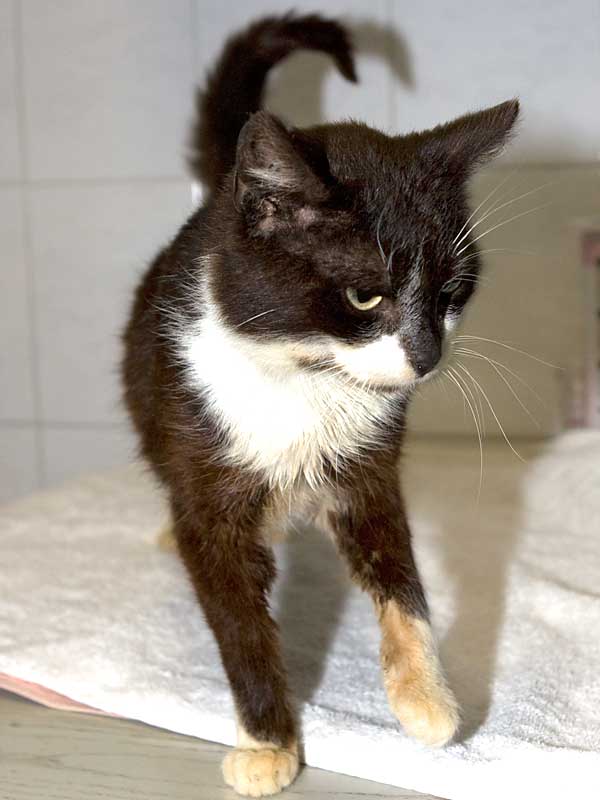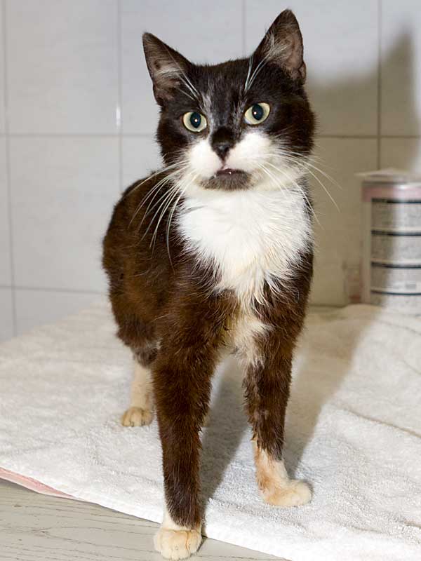 Smokey ist gerade erst als Fundkater aus Ziesar bei uns eingetroffen. Das Futter bei uns schmeckt ihm gut und er säubert seinen Napf gründlich.