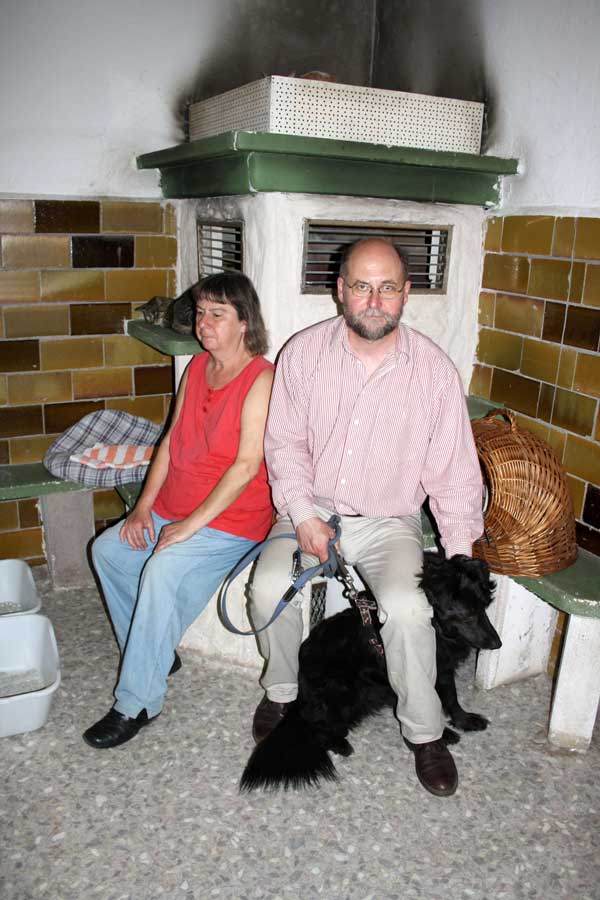 Zum Aussuchen eines passenden Grautigers waren nicht nur Naomis neues Frauchen und Herrchen gekommen, sondern auch ein großes schwarzes Fellbündel, das sich aber im Katzenraum doch wohl recht unterlegen fühlte und lieber bei Herrchen Schutz suchte, um möglichen Attacken von "Kampfkatzen" zu entgehen. Wer genau hinschaut erkennt ihn vielleicht wieder: es ist unser Rocky, der schon vor ein paar Wochen adoptiert wurde.