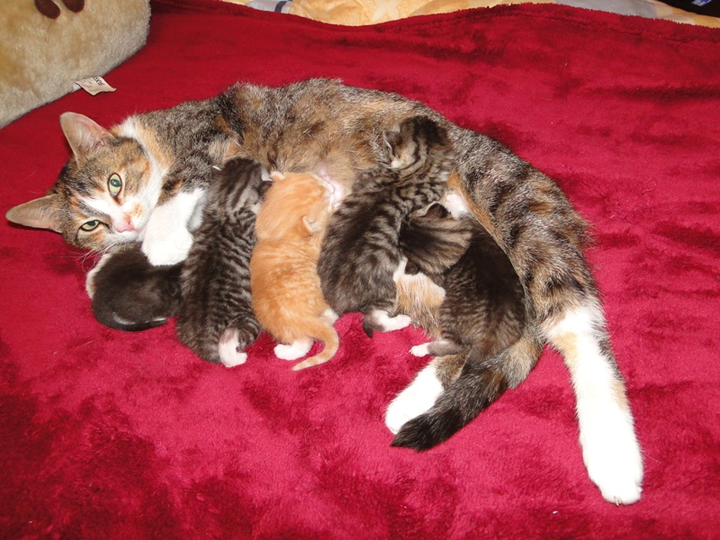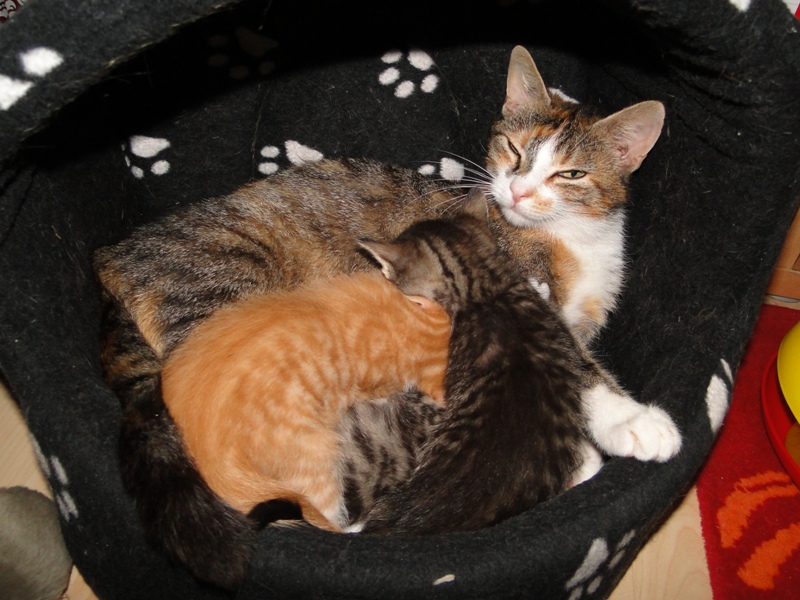 Wir richteten schnell ein Quartier und bangten, wie Fay dies alles verkraften würde. Doch obwohl sie noch so jung ist, zeigte sie sich als ganz vorbildliche Mama und versorgte ihre Kitten liebevoll.