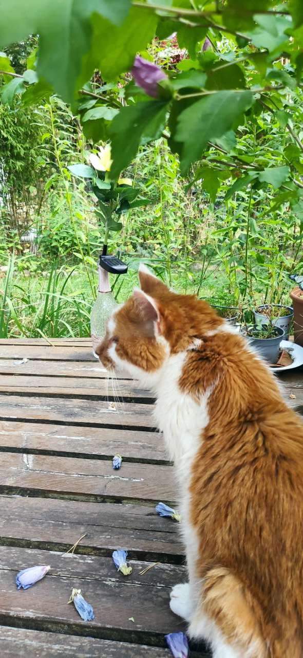 Doch dann nach 4 Wochen ging's aufwärts, rasant . Da warst DU !! In Präsenz und Stärke, was für eine Erscheinung!!! Unsere gemeinsamen Spaziergänge im Hinterhof - obwohl es nicht dein Revier war & du mit Abstand der älteste…die anderen Hofkatzen sind dir aus dem Weg gegangen...du musstest dich nicht mal in Kampfstellung bringen. Es war deine mentale Stärke die die anderen gefühlt haben. Unsere erste Zeit im Fläming…du warst gleich eine Woche im Wald verschwunden…alles haben wir abgesucht……nach einer Woche kamst du , lautstark -, gibt's was zu essen? Da du taub warst hast du viel mit Augenkontakt gesteuert…für mich warst du ein Buddha in Katzengestalt'